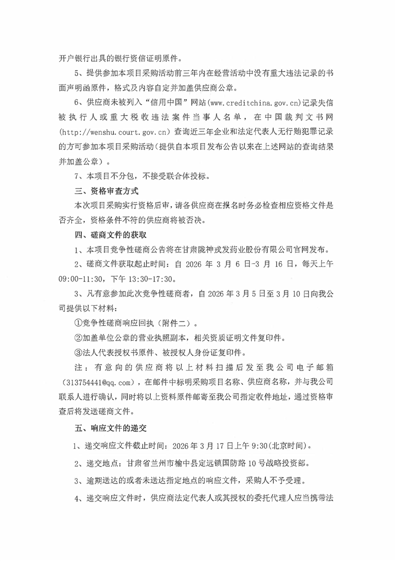甘肃陇神戎发药业股份有限公司制剂车间生产线改造项目(一)BGB高效包衣机改造竞争性磋商公告