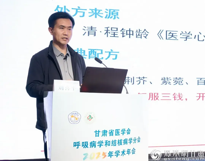 会上,甘肃省名中医、甘肃中医药大学附属医院肺病科主任医师刘喜平分享经典名方在止咳治疗中的传承与创新。他表示,甘肃药业集团旗下拳头产品宣肺止嗽合剂源自古代名方,对治疗各种咳嗽具有良好的临床疗效及安全性。