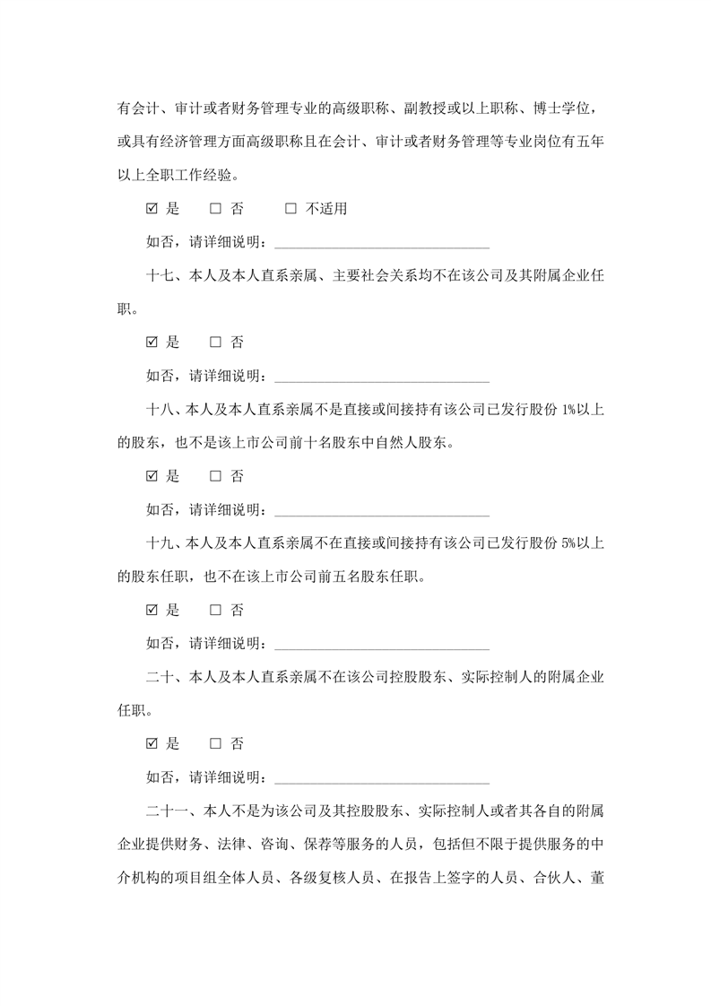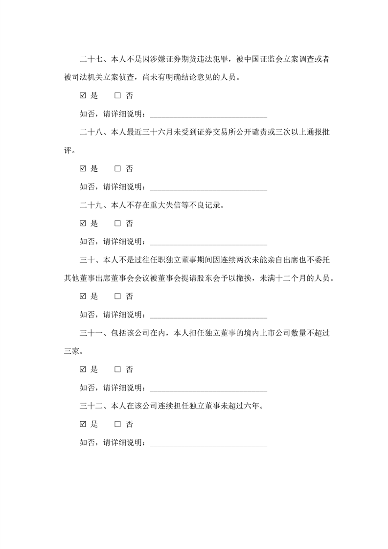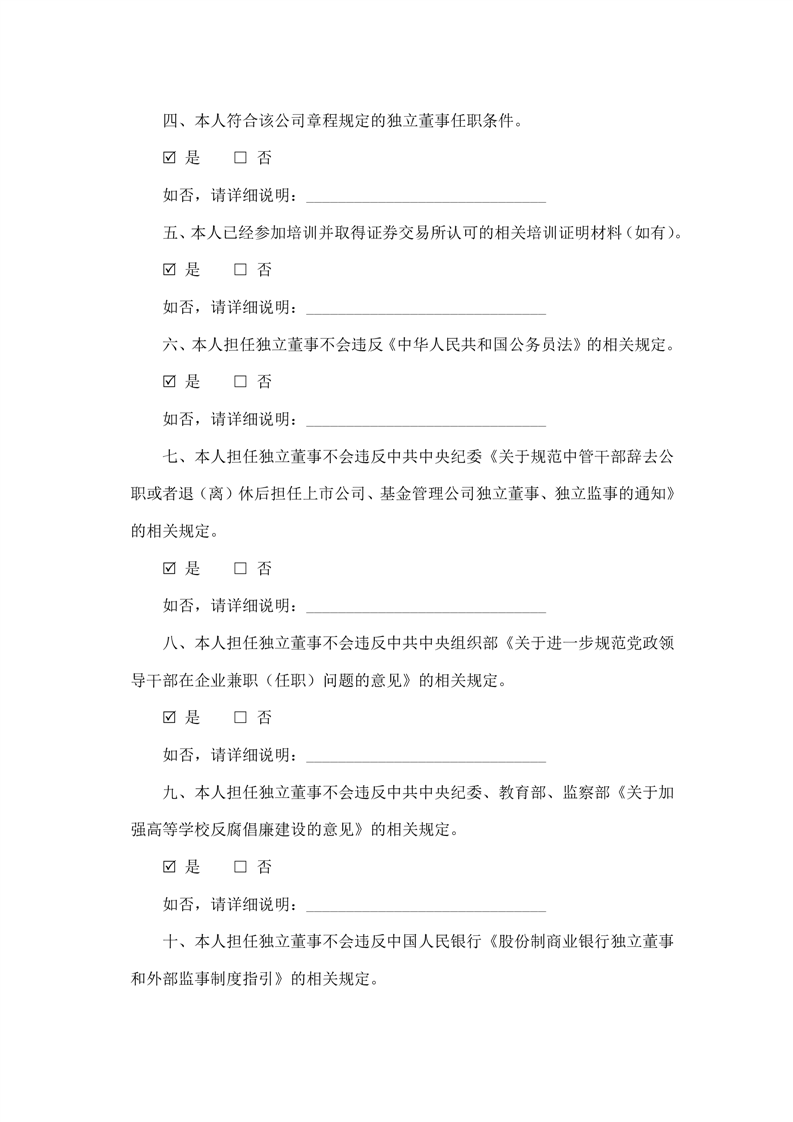 独立董事候选人声明与承诺