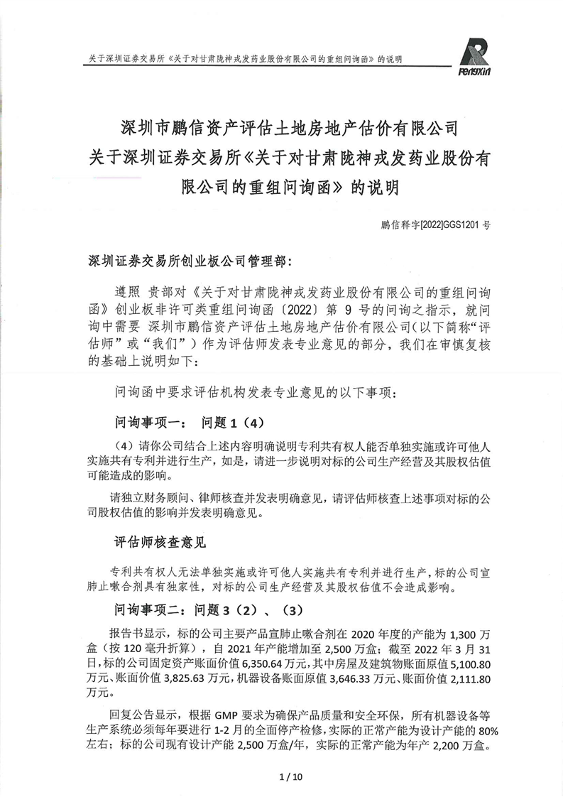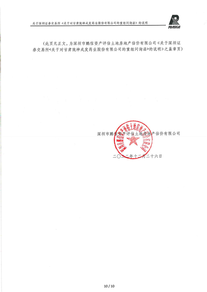 华龙证券股份有限公司关于深圳证券交易所《关于对甘肃陇神戎发药业股份有限公司的重组问询函》之核查意见