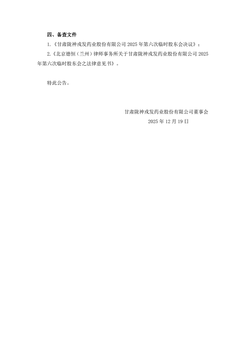 2025年第六次临时股东会决议公告
