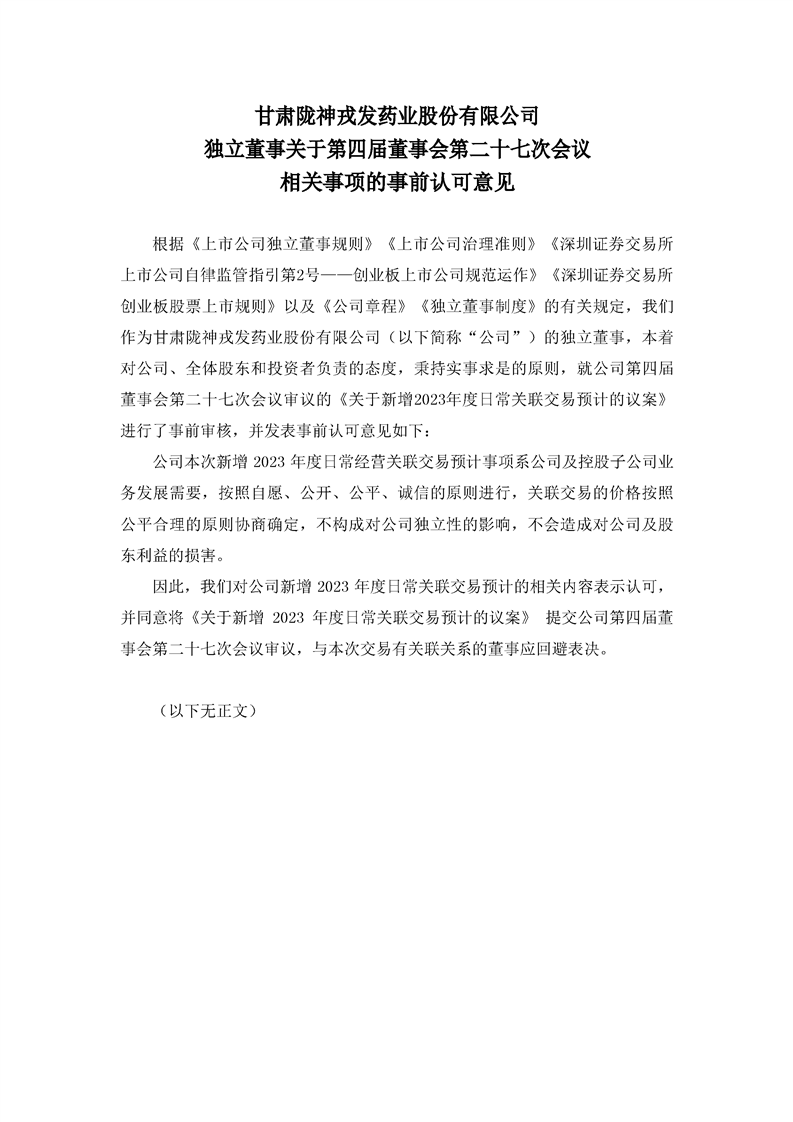 独立董事关于第四届董事会第二十七次会议相关事项的事前认可意见