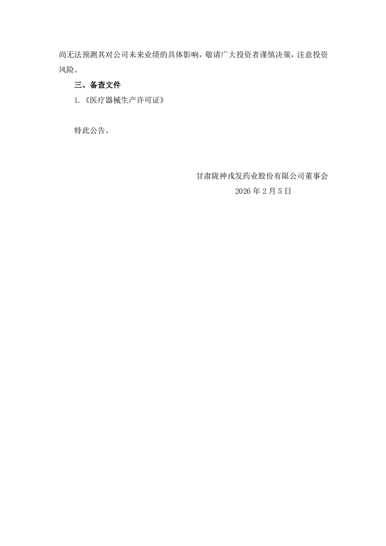关于取得《医疗器械生产许可证》的公告