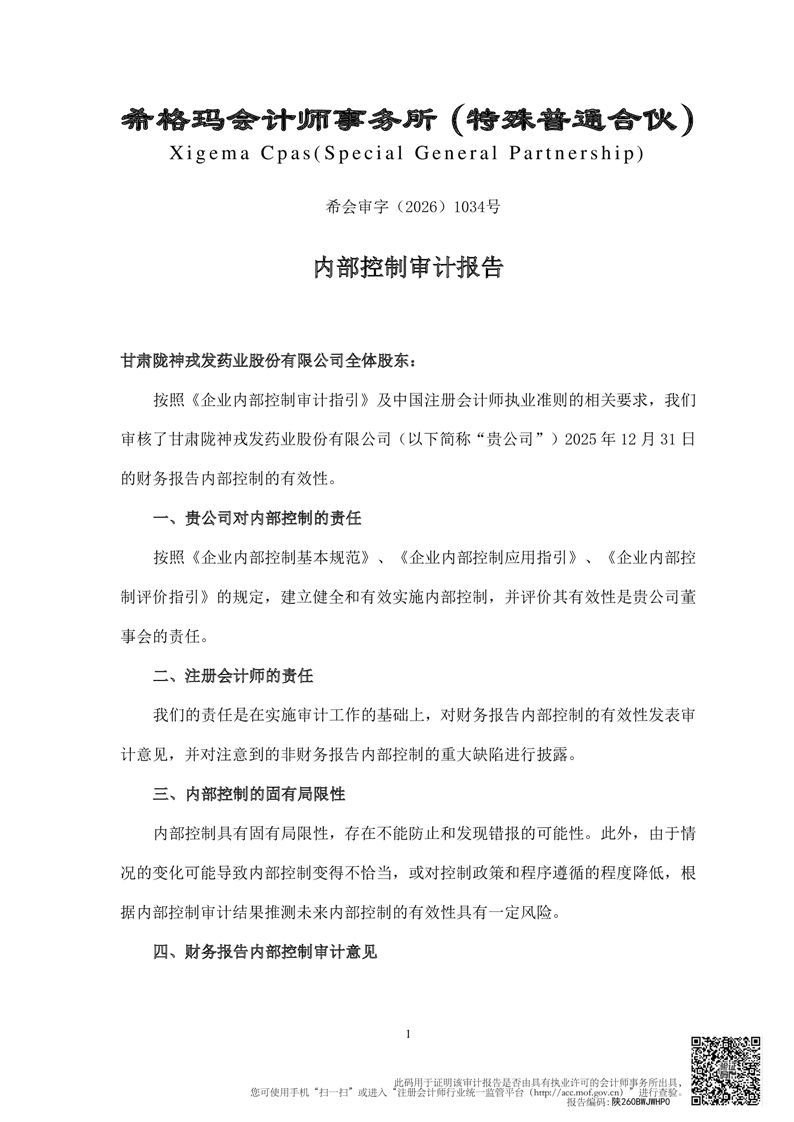 2025年度内部控制审计报告