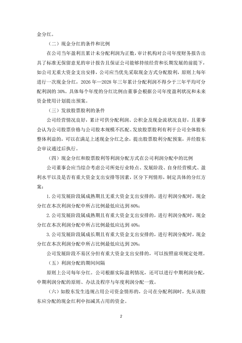 未来股东回报规划(2026年—2028年)