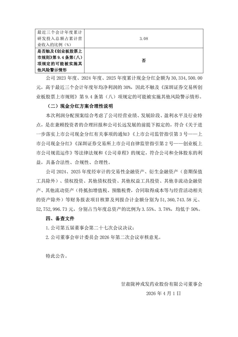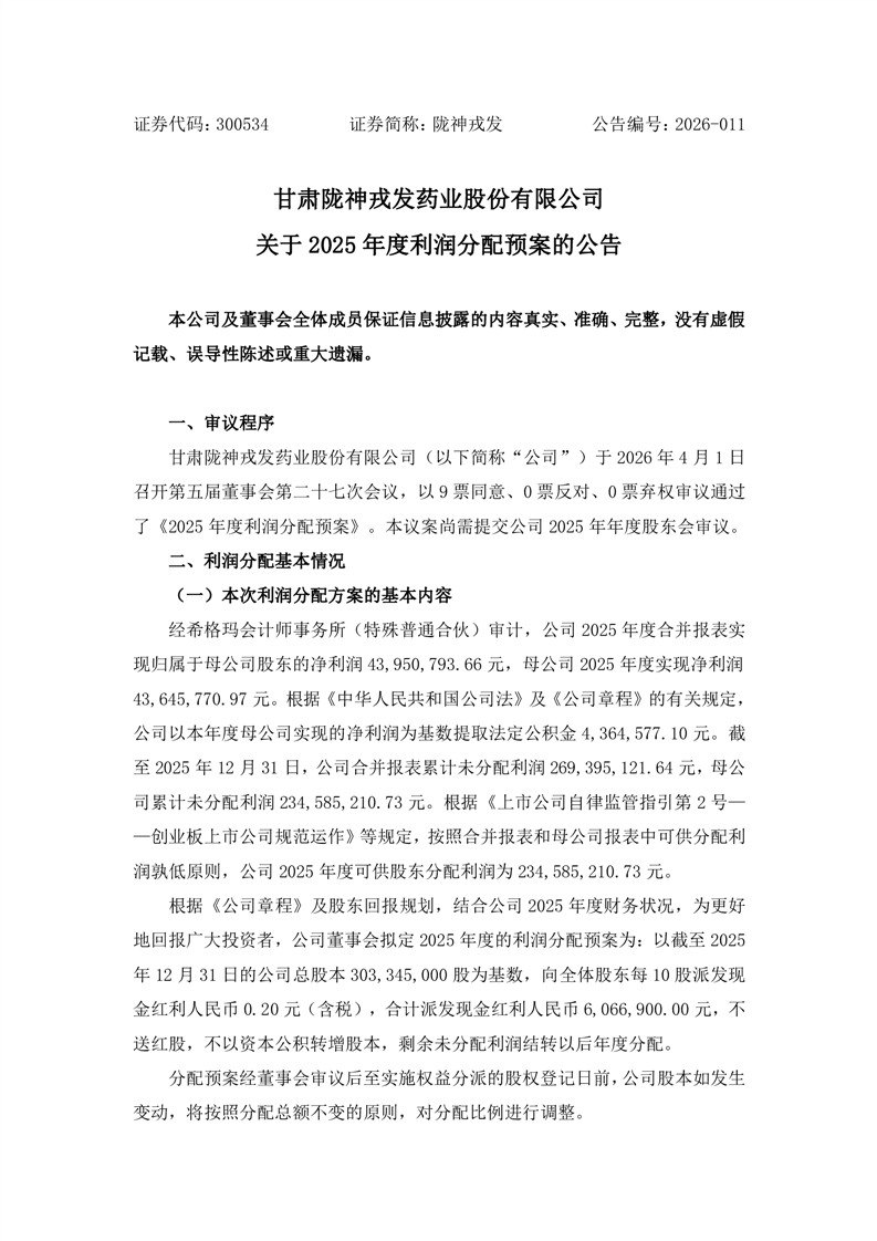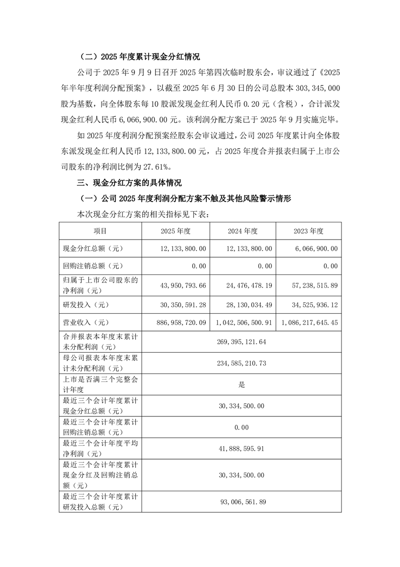 关于2025年度利润分配预案的公告