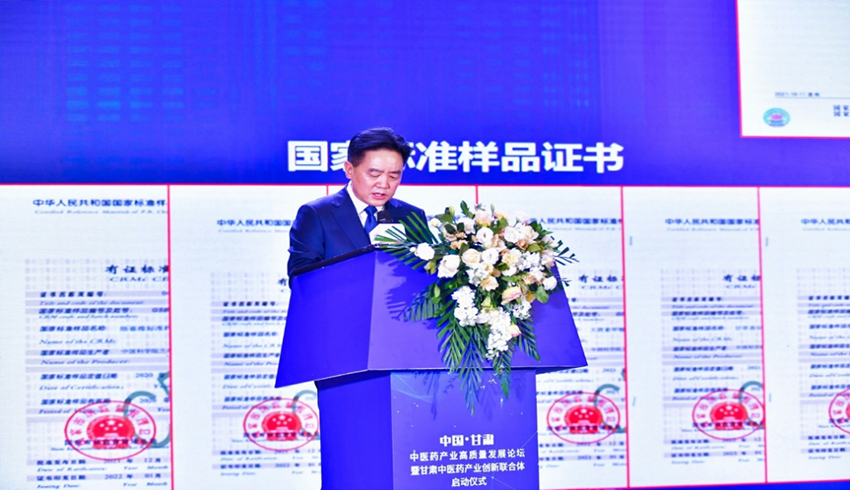 张世荣在致辞中表示,甘肃是五个中医药重要发源地之一,也是中药材主要产地之一,中医药产业是我省经济发展的重要支撑,全省中医药产业创新联合体成立,为中医药发展提供了创新要素的强劲支撑,搭建了资源共享平台,畅通了信息交流的渠道,我们要利用这一平台,充分发挥创新引领和资源聚集效应,进一步厚植产业优势、创新政策的优势,加快上下游产业链融合,推动中医药产业高质量发展。甘肃药业集团作为牵头组织单位,要继续发挥龙头带动效应,技术资金的优势,加快推动产学研一体化,为全省构建绿色低碳的现代化产品体系、加快高质量快速发展提供支撑。