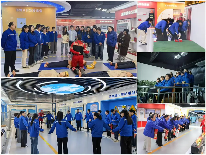 随后,在路桥集团安全体验馆,大家在专业教官的指导下,沉浸式参与了消防应急、高处坠落防护、用电安全、机械伤害体验等多个体验项目。