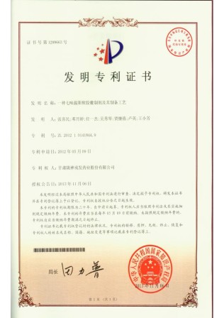 陇神戎发授权专利41项,其中发明专利19项,实用新型14项,外观专利8项。