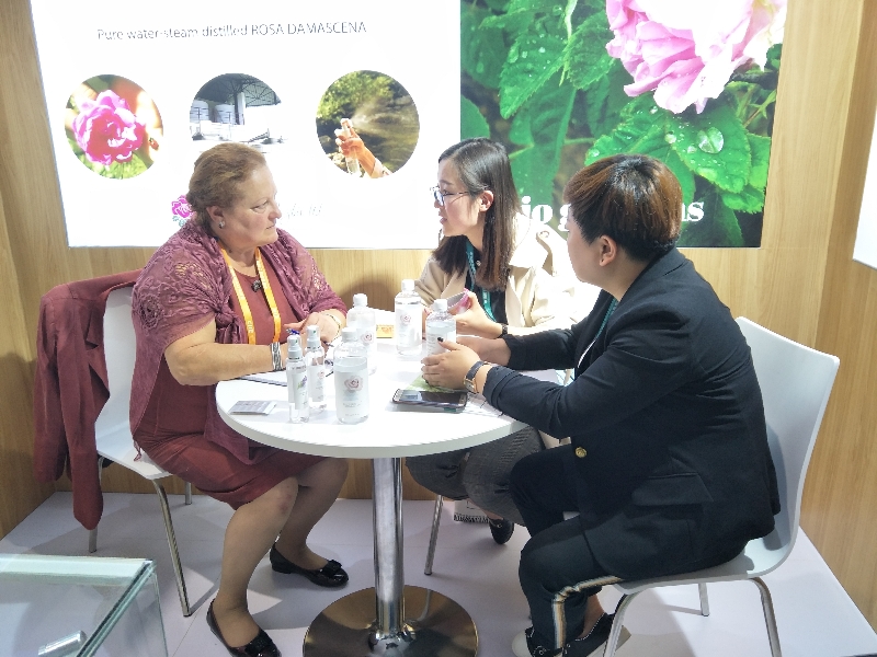 同时,参展人员也在展会其他展馆积极寻求商机,参观考察了保加利亚纯天然玫瑰水、日本滚轮牙刷、日本纳豆面膜、日本防雾霾透明鼻孔罩、非洲魔棒牙膏、哈萨克斯坦蜂蜜等特色产品展示,并与相关参展公司进行详细洽谈、咨询,以期望在未来发展中充分利用新丝路公司进出口资质,拓展进出口业务资源和产品渠道。