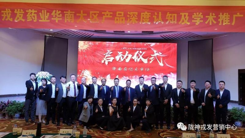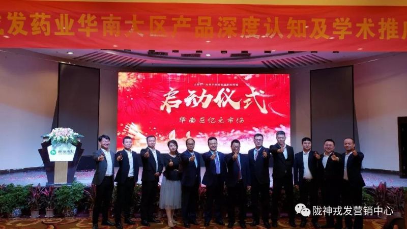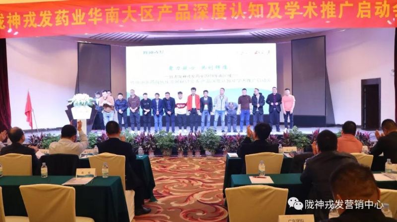 作为此次会议的压轴环节,陇神戎发营销总监苏海龙先生上台表明了2019年华南大区元胡止痛滴丸销售额过亿的信心,并邀请所有领导及合作伙伴上台,共同开启了“华南大区亿元市场启动仪式”。