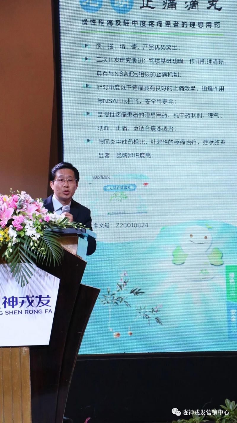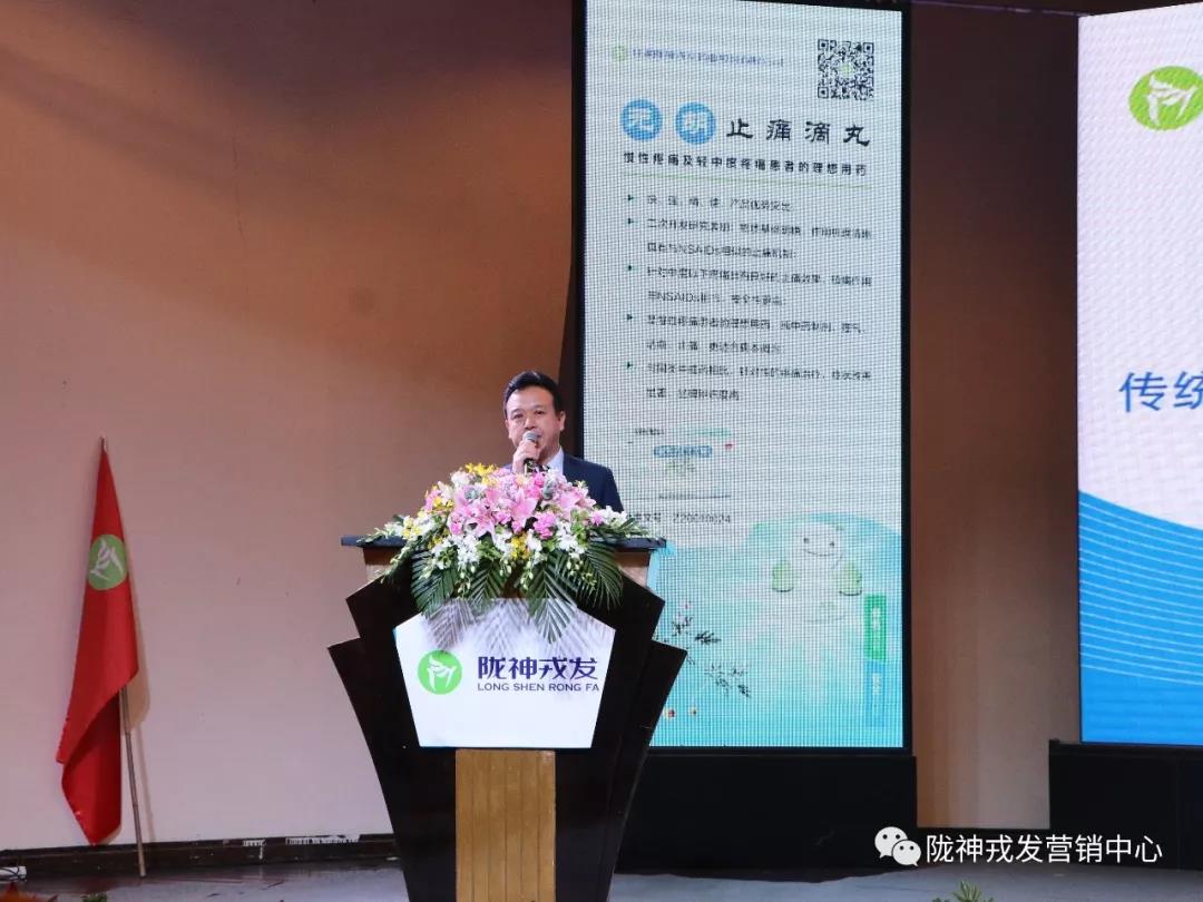 接下来,由甘肃陇神戎发药业股份有限公司董事、总经理康永红先生做重要讲话。康总回顾了陇神戎发从建厂直到现在一步一个脚印的路程,以及所获得的诸多科技、质量奖项。新生产基地的建成投产是陇神戎发做强、做大、做优的基石。康总经理在陇神戎发积极投入的营销支持,与合作伙伴的互利共赢,设置各个大区及学术人员,加强产品力打造等方面进行了简介。康总经理表示,要抓住陇药产业发展及甘肃中药大品种培育的时机,把元胡止痛滴丸推到一个新的高度,陇神戎发愿与各位合作伙伴精诚合作、共赢未来!