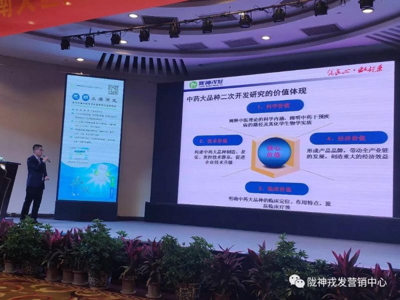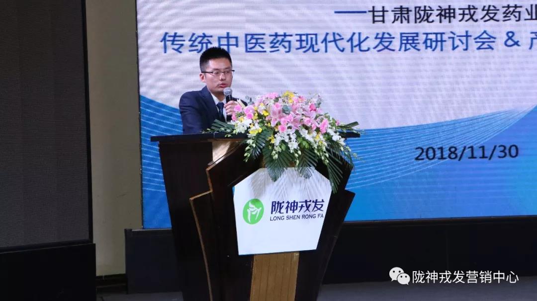 甘肃陇神戎发药业股份有限公司副总经理钱双喜先生针对元胡止痛滴丸二次开发研究过程及结果向在座的专家及客户做了介绍展示。