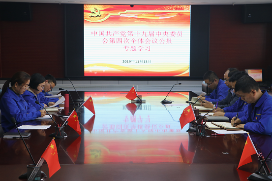 会议强调,要提高政治站位,认真学习贯彻十九届四中全会精神,进一步树牢“四个意识”,坚定“四个自信”,坚决做到“两个维护”。把学习贯彻全会精神与推动当前各项重点工作紧密结合起来,以实际工作成效来检验学习贯彻成果。结合“不忘初心、牢记使命”主题教育,通过中心组学习、各支部“三会一课”、主题党日活动等形式,立即组织传达学习全会精神,确保覆盖到每一名党员,在公司掀起学习宣传全会精神的热潮。