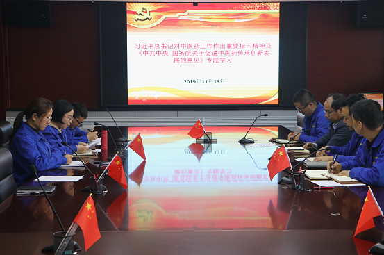 11月13日下午,陇神戎发党委召开理论学习中心组会议,专题学习党的十九届四中全会精神、习近平总书记对中医药工作的重要指示精神及《中共中央、国务院关于促进中医药传承创新发展的意见》,并就学习宣传贯彻工作进行部署。