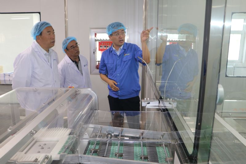 在制剂车间,钱双喜向调研组一行讲解了元胡止痛滴丸滴制、晾丸等的生产工艺流程,调研组一行在外包装联动线前观看了元胡止痛滴丸内包及外包装生产全过程。