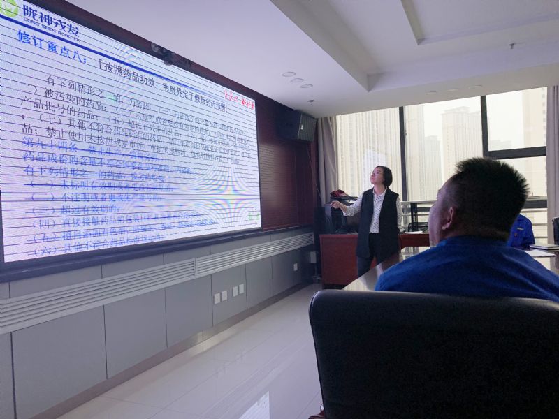 近日,国家药品监督管理局发布了新版《药品管理法》,将于2019年12月1号起实施。为了贯彻学习新版《药品管理法》,提高公司生产经营队伍素质,2019年9月12日,公司于六楼会议室组织了多个部门统一进行学习,由公司总工程师邓月婷对相关内容及要点进行了详细的讲解培训,对其中涉及到的多个难点进行了剖析与解答。