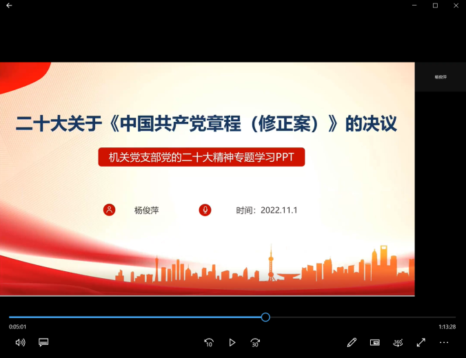 11月1日,陇神戎发机关党支部以腾讯会议形式开展11月主题党日活动,专题学习党的二十大精神。