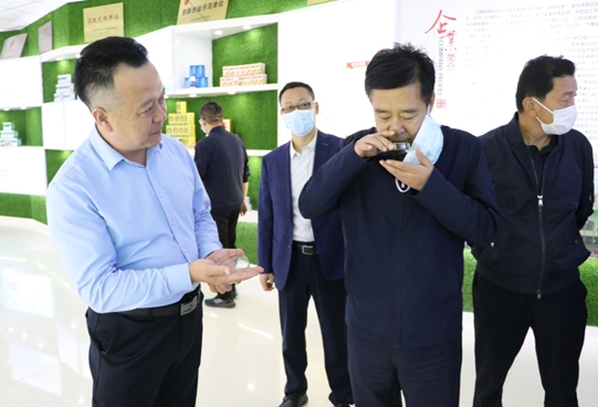 王奋彦一行在甘肃药业集团党委书记、董事长魏阳的陪同下,饶有兴致地参观了公司制剂大楼的产品陈列厅,详细了解了甘肃药业集团的组建背景、产业构成,以及陇神戎发的发展历史、科技研发、主导产品及市场销售情况。魏阳董事长就陇神戎发主打产品元胡止痛滴丸的市场规模和剂型特点向调研组进行了详细介绍,并结合公司近期推出的元胡止痛滴丸妇科“痛经”单病种全新包装,以及以甘肃道地药材黄芪和当归为主要原料研制而成的黄芪当归胶囊将逐步拓宽线上销售等一系列创新举措,与调研组进行了深入交流。