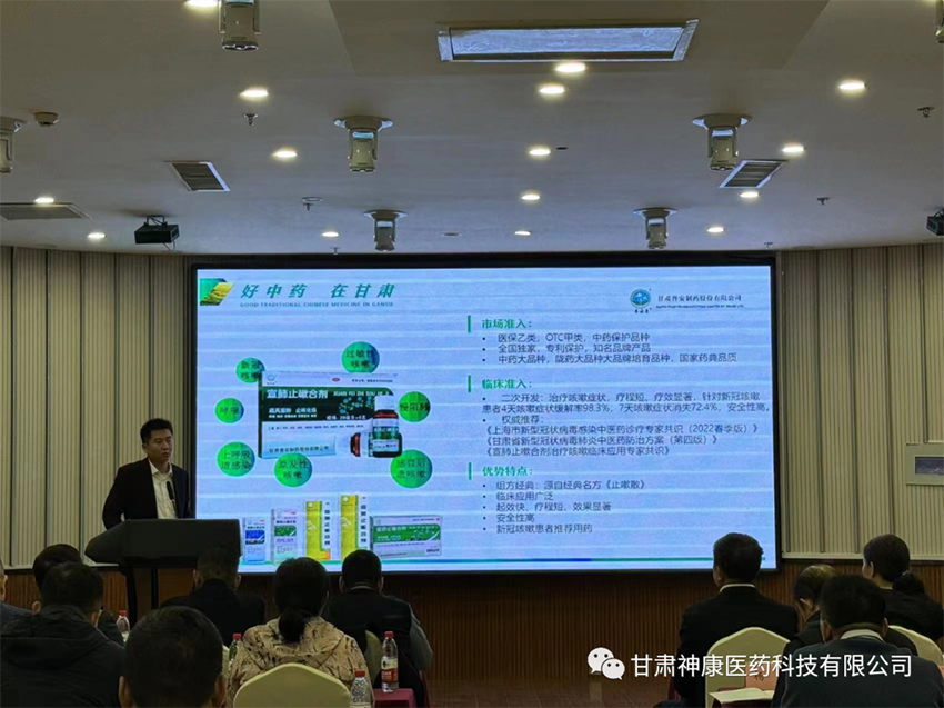 同时,甘肃神康医药科技有限公司山东省区经理冯阳在企业介绍中为大家科普了陇药和中医药文化。甘肃药业投资集团有限公司作为甘肃省唯一一家以医药健康为主业的省属国有医药企业集团,是承担甘肃省建设国家中医药产业发展综合试验区任务的重要平台、促进陇药和中医药文化“走出去”重要载体。