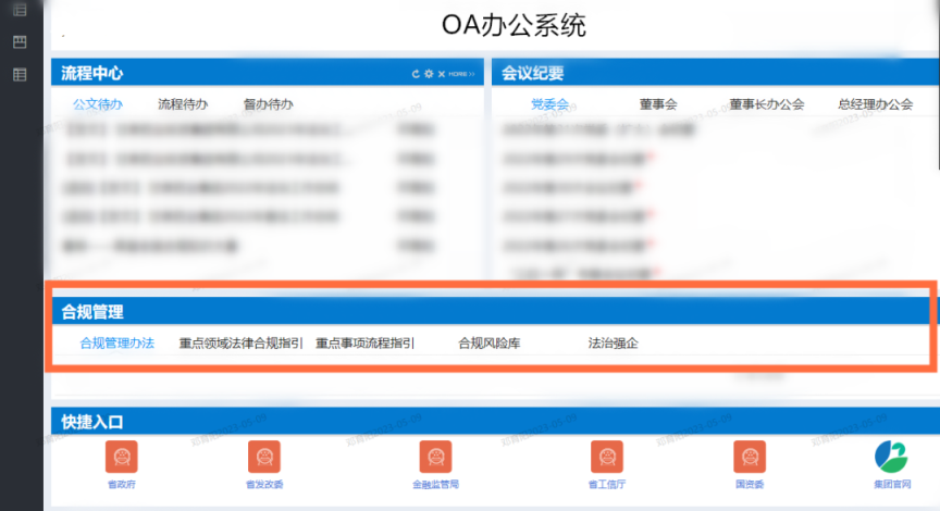“1个平台”——OA合规信息综合平台