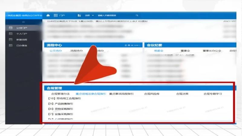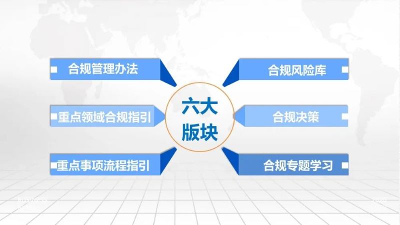 为进一步推动集团公司合规管理体系建设,加强合规管理工作的便捷性、集约性,集团公司法律事务部结合日常OA办公平台,创建“合规管理信息综合平台”,该平台共设置“合规管理办法”、“重点领域法律合规指引”、“重点事项合规流程指引”、“合规风险库”、“合规决策”、“合规专题学习”六大版块,集检索、指引与学习三大功能为一体,集团公司所有OA用户通过电脑登录后可在首页直接使用该平台功能。