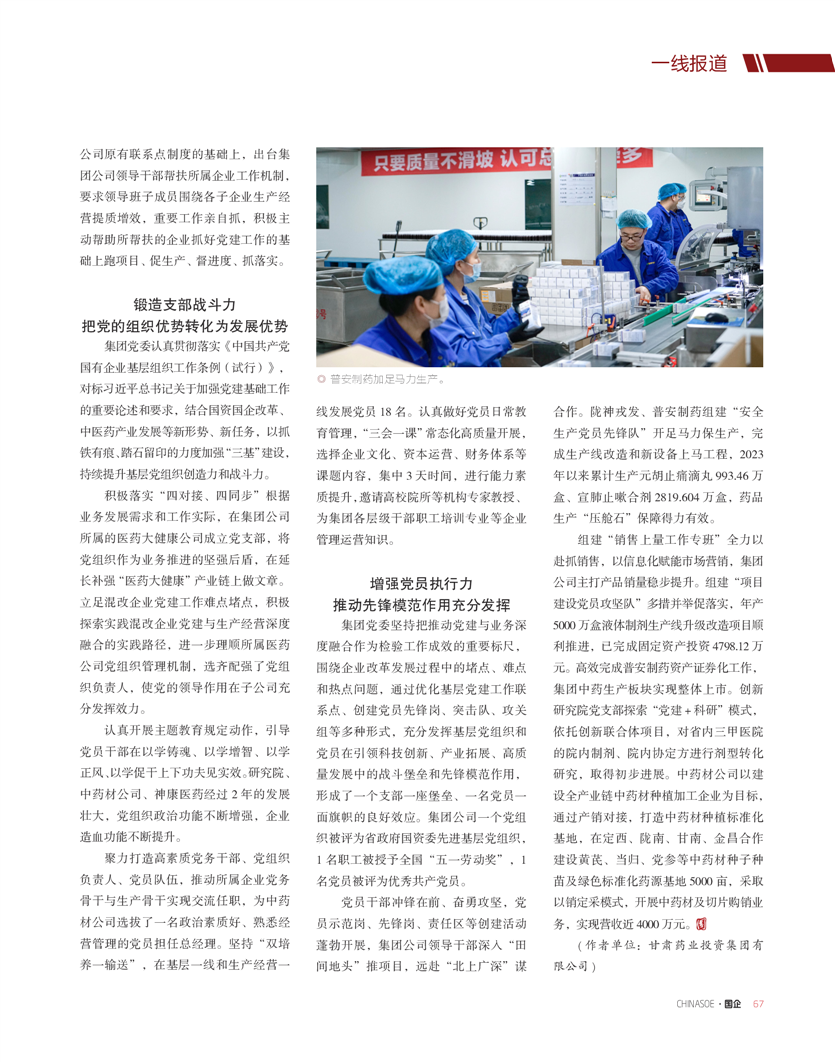 《国企》杂志:甘肃药业集团“三力齐发”推进党建工作与生产经营互促共进