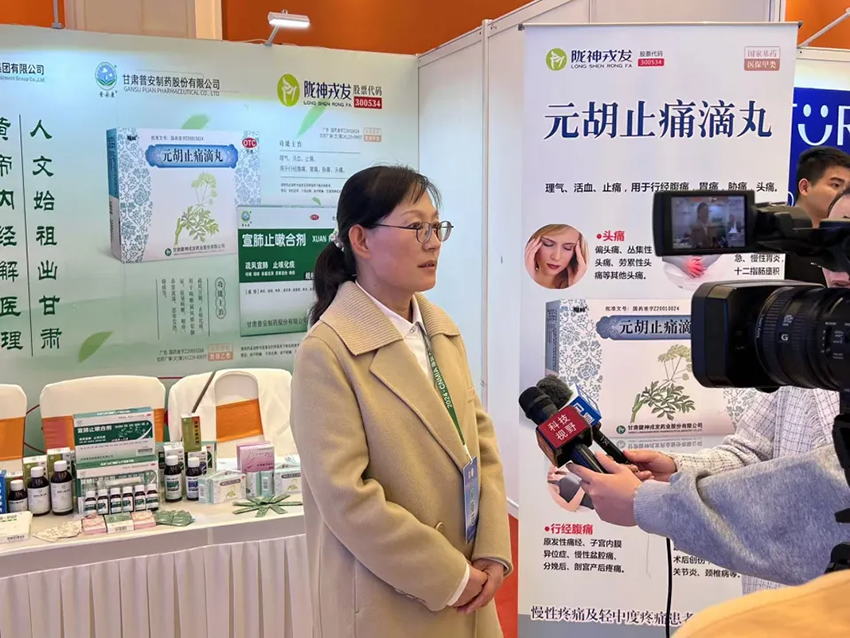 甘肃药业投资集团有限公司携元胡止痛滴丸、宣肺止嗽合剂、麻杏止咳胶囊、七味温阳胶囊、斯娜格药膜、黄芪当归胶囊、复方丹参片等特色陇药产品亮相此次盛会,并在会场展区设置展台宣传。