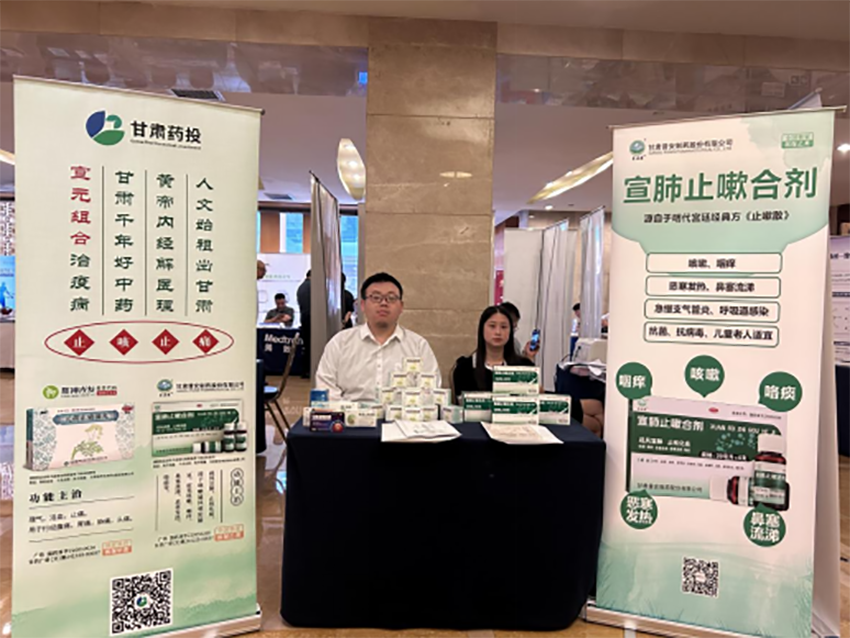 甘肃药业投资集团有限公司携元胡止痛滴丸、宣肺止嗽合剂、麻杏止咳胶囊、七味温阳胶囊、斯娜格药膜、黄芪当归胶囊、复方丹参片等特色陇药产品亮相此次盛会,并在会场展区设置展台宣传。