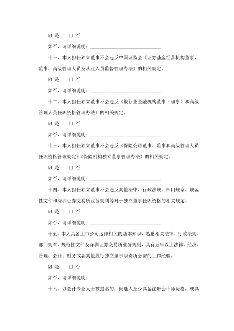 独立董事候选人声明与承诺
