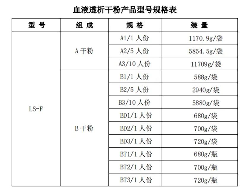 此次公司获批的血液透析干粉产品市场成熟,已被临床大量应用,适用于急性肾衰竭、慢性肾衰竭的血液透析治疗,注册的产品离子浓度型号为“钾2.0、钙1.5”型,使用规格广泛覆盖1人份、5人份、10人份装量及联机B干粉袋、联机B干粉筒等,完全适用于各种品牌血液透析机的联机包装,可满足绝大多数患者与透析中心的使用需求。
